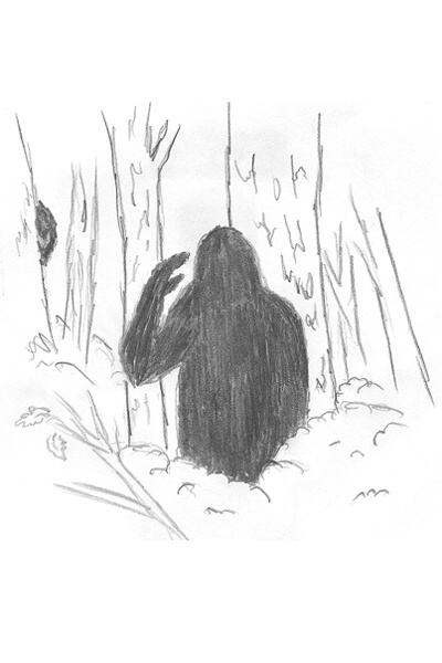 So at this time, I tell John, "There's another one." And he says, "Where, where?" And I point in the general direction, I jump down off the car and run into the woods after it. It didn't run until I got about 20 feet in, that's when its pace picked up. It brought its elbows real high as it was running. And then I lost sight of it, because I didn't know that the ground actually sloped down. By time I got back to the hill I couldn't see it.