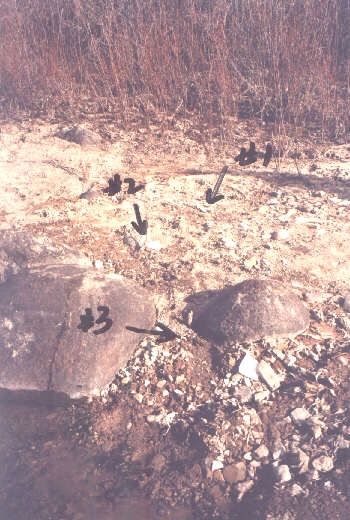 Track 2 is north of track 1. It is also a right footprint. The intervening left footstep between tracks 1 and 2 is not clearly discernable in the soil, and was not photographed by Bill B.