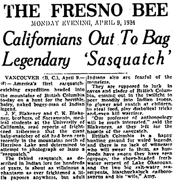 Old newspaper article (Fresno Bee) Univ. Calif. students plan expedition to BC