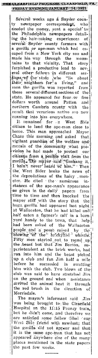 Old newspaper article (Clearfield Progress - Pennsylvania) sightings by farmers in Clearfield County