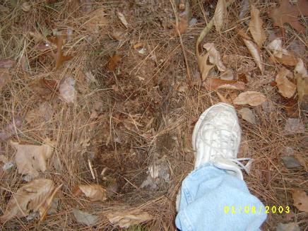 The set of prints were found a few miles from the road, about 20 yards off the main trail. The forest floor was leafy debris and pine needles.
