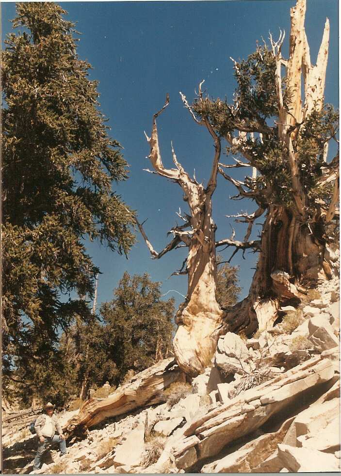 The second photo shows me standing next to the 4000+ year old bristlecone pine. We had to go through this grove of bristlecone pines on the way to our deer hunting area.