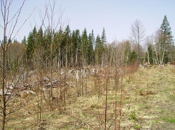 First Site: The first location is where most of the activity occurred. From the gate the pond is three miles up the road on what they call the Main Line. The trailer was parked a mile further down the road beyond the pond. A large clear cut was on the north side of the trailer site. A road ran north through the clear cut, bending to the east about in the middle. A spur road extended north from the bend in the road and ended at the tree line.