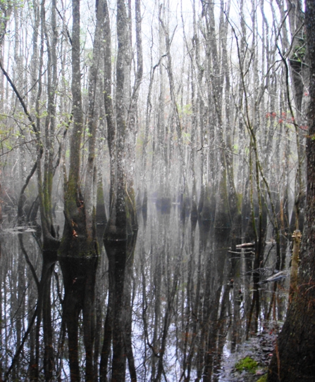 Just past the spot of this sighting is a dirt road to the left when heading south on Hwy 317. This forest road meanders off into the dismal swamp where few dare to venture except during hunting season or the occasional fisherman. I ventured down this roadway close to dusk looking for sign of any activity. There were many game trails zig-zagging off into the mixture of scrub pine trees and cypress trees. I looked for tracks. There were plenty of deer! No other sign.