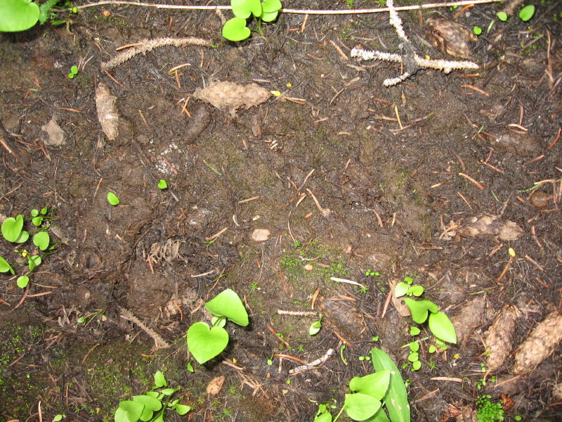 It was now somewhere between 1:30 pm and 2 pm, and I started down towards Squaw Spring. I noticed some more prints as I walked but I still didn’t believe what I was seeing. I found some that seemed to continue on further but I did not follow them since I had planned to go a few miles into the Wenaha-Tucannon Wilderness and didn’t want to waste time. It also looked like there was a foot impression on a log that had fallen across the spring. This all seemed too surreal to me because there were lots of prints everywhere even some that appeared smaller, possibly a juvenile animal, but they were just thin outlines. I had never seen prints like these in person so I was unsure what I was even looking at.