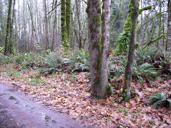 This picture shows the forest that the creature walked into from the position of the creature before it crossed the road.
