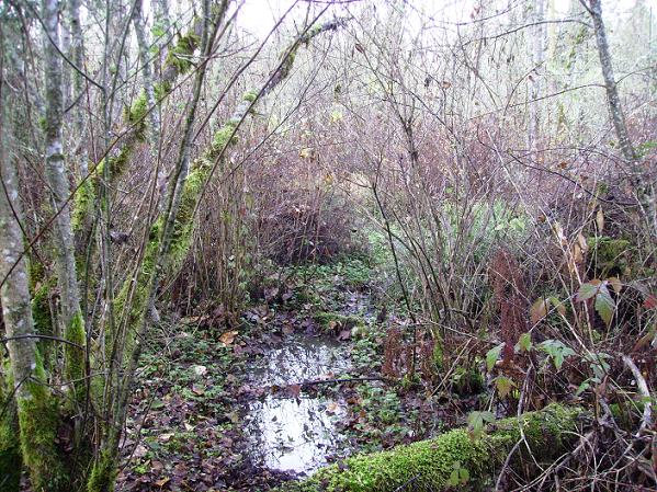 I interviewed the witness over the phone, and then later at his home. I also spoke to his parents. We walked through the woods next to his home and to where the vocalizations originated. There are many game trails, running mainly north-south, leading from the river to the south, to the fields around a small lake to the north. These trails are visible in Google Earth images. The ground is very wet with standing water, and the brush is quite thick in most places. There were the tracks of probably 10 elk which had been there just that morning. The witness is very familiar with the vocalizations of elk, having lived in the area all his life. The sounds he described were not elk calls. Also, an elk would not have moved back and forth, toying with the dogs.
