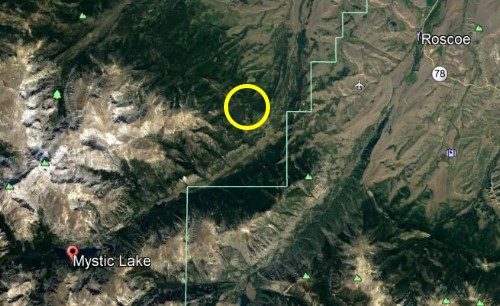 SEASON: Summer MONTH: July DATE: 15 STATE: Montana COUNTY: Stillwater County LOCATION DETAILS: To get there take Highway 78 south out of Absarokee about 2.5 miles and turn right (west) onto the road to Fishtail. Go past Fishtail about a mile and turn left (east) onto West Rosebud Road. Four miles farther, turn right (west) at the sign to Mystic Lake. Just 2.6 miles farther down the road, turn left (south) when the road Ys and take the gravel road across the West Rosebud River. The road parallels the river south before crossing it again. From this bridge, go 2 miles and across a cattle guard. Park just on the other side of the cattle guard. This is near the BLM corner. NEAREST TOWN: Fishtail, Montana NEAREST ROAD: Highway 78 OBSERVED: This happened summertime early 70's (I think 71, 72?). Me, my husband at the time, and my two brothers hiked into Lilly Pad and Crater Lakes, Stillwater County, Montana. It borders Custer National Forest, north of the East Fork of Fiddler Creek.