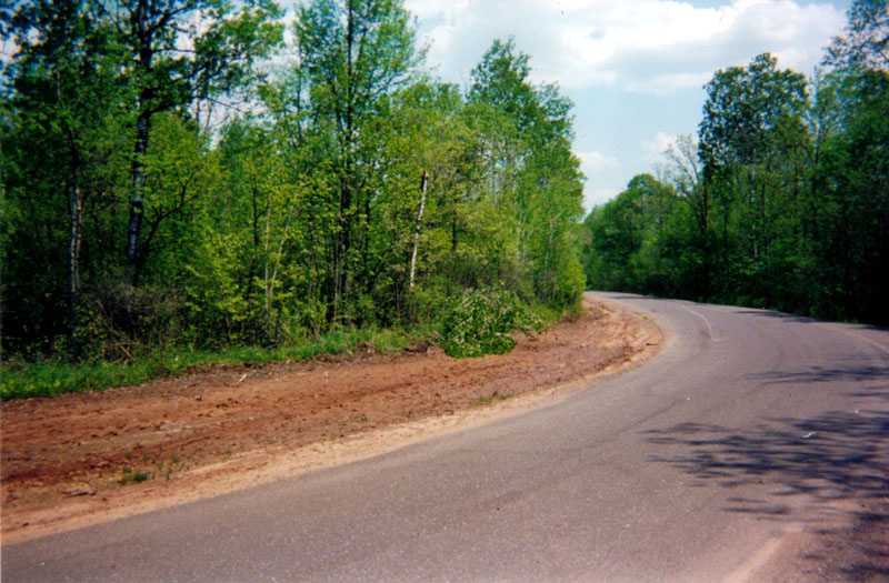 The witness has photographs showing the aspen (not birch) tree before and after its top snapped off. It is a healthy looking tree approximately 7 inches in diameter at chest height and about 4 inches in diameter about 16 feet up, where it broke off. The top 15 feet or so, the crown of the tree, was in full leaf when it broke off. I inspected the tree and cannot understand why it would break off as it did. I did not find any hairs stuck to the tree. As indicated, the witness has a picture showing the intact tree (figure 1), (photographed incidentally when taking pictures to show the area surrounding the suspect track), and then a picture of the same tree (taken from nearly the same position as the first photo) showing the tree with its top snapped off and lying on the ground (figure 2). The weather was calm and it was a warm, sunny day when this happened. The trunk of the tree at the break point was green and strong looking.