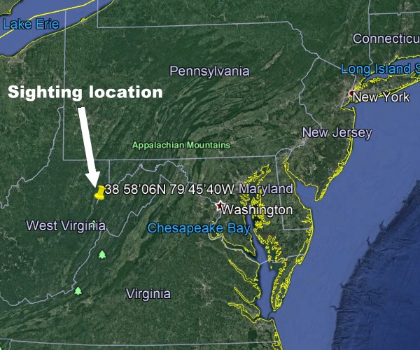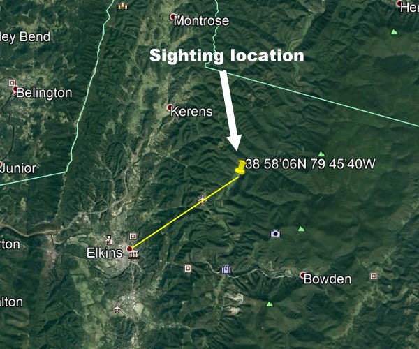 Daylight sighting by fisherman 6 crow miles NE of Elkins