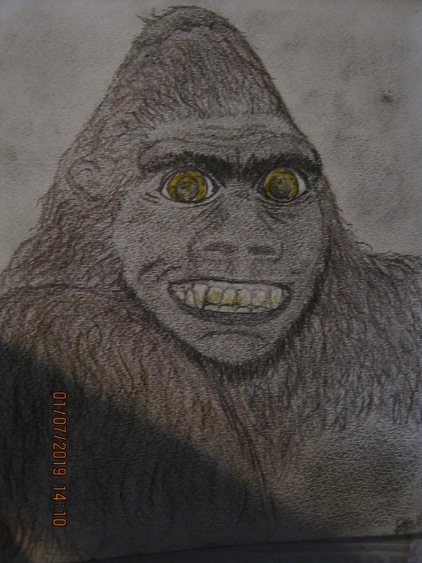 The first image is a sketch of the creature made by the witness and provided to the lead BFRO investigator in Kansas -- Carter Buschardt.