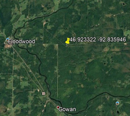 SEASON: Fall MONTH: November DATE: Second tuesday STATE: Minnesota COUNTY: St. Louis County LOCATION DETAILS: County rd 8 north side between powerlines and county gravel pit NEAREST TOWN: Floodwood NEAREST ROAD: County road 8 OBSERVED: I was deer hunting about 5 miles from floodwood mn on co. rd 8 about a half mile after the blacktop ends just past the powerlines and before the gravel pit.