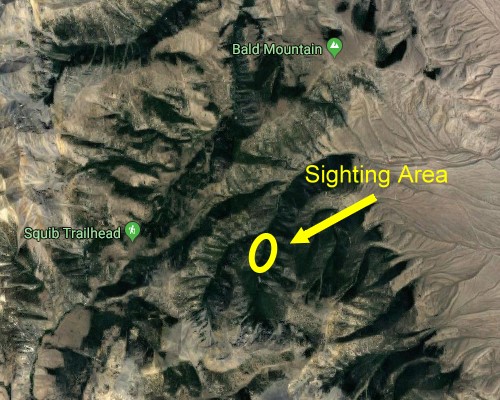 SEASON: Summer MONTH: July STATE: Idaho COUNTY: Clark County NEAREST TOWN: Leadore NEAREST ROAD: us 28 OBSERVED: In July of 2007, a friend and I went camping and fishing to the Birch creek area off of Hwy 28 in Clark County. We crossed the creek and set up camp at the trail head in Eight Mile Canyon. There is an ATV trail system that loops up the canyon and around the mountain range.