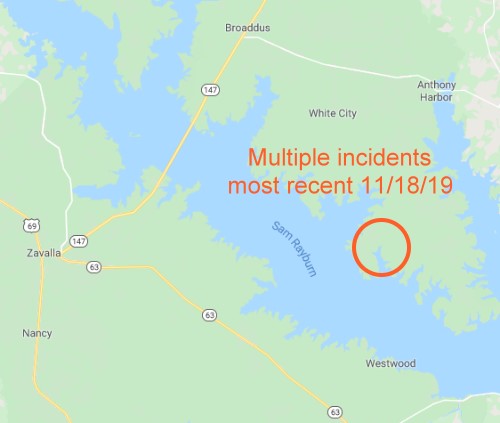 Multiple incidents reported by multiple hunters near Sam Rayburn Lake