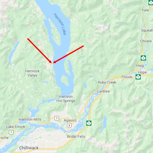 There is a beautiful stream that goes under the bridge (freshwater) and into Harrison Lake. It is a very calm and beautiful place but it is private property signs all over so I was trespassing.