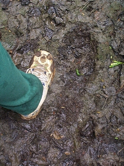 This track (though questionable as to why being singular in context) has a similar shape to three 19" tracks found in a permanent study site nearby. It has a heel width that seems rather narrow in proportion to the rest of the foot, but that is also a characteristic of the other three 19" tracks found. It is also an undocumented trait described as often being observed with the largest of tracks, according to some experts.