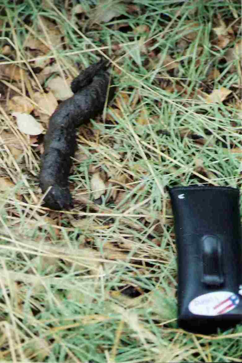 We all observed several deer and one wild hog while we were leaving that area. What I do remember about the hog was that it was black, looked like it weighed about 250 to 300 lbs. and this critter seemed to be all head and mouth as it moved really fast away from our vehicle. I did attempt to get a photo of it but it came out blurred. Enclosed are a few photos that I took while at the location. Two photos are remnants of where hogs were on that ridge line, scat and a rutting area, and which I believe was going to have been dinner for this creature on that fateful day. The other photo is approximately where the creature was first spotted.
