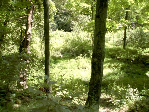 Here is a picture of the area where we believe the creatures come through their property. Believe it or not, there's a spring fed creek beneath all that thick undergrowth. A surveillance camera has been set up near this location.