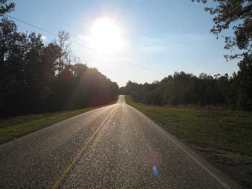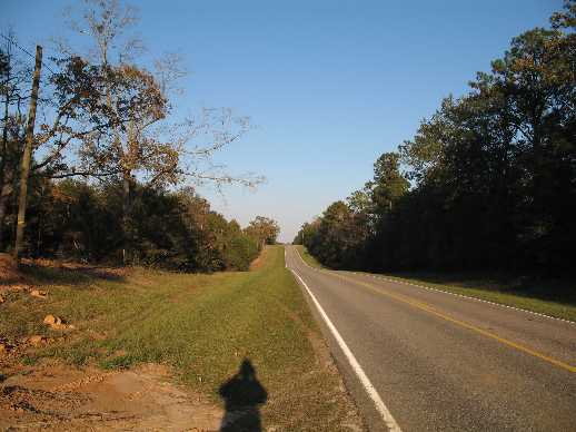 Sighting location view looking east toward driver. Creature would have crossed right to left in picture (to the north).