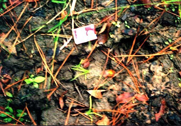 October, 2004, same location: Bow hunting, I spotted a few does on the way in, but could not get a clear shot. I passed. Later, kicked up something, but had no visual contact (probably a deer). Near dark, I decided to walk the fire trail quietly. A few hundred yards in, I found a somewhat human shaped footprint along the side of the firetrail. It was the same length as my size 12 EEE boot [14 inches], but quite a bit wider at the "toe" end. The "toes" also seemed to end rather evenly, and not the arched, rounded look of a human track. As I photographed, I noticed an odor, mild at first, and quickly becoming quite powerful. I would describe it as complex, layered. The predominant odor was of sour sweat. I could also smell decaying flesh, and a musky undertone. I finished photographing the best track (there were several other "impressions"), and photographed the woods directly behind me, from where I felt the odor eminated. I slowly and quietly walked back to my truck (20 minutes), and set my bow in the bed of the pickup as I retreived my keys from my pocket. It was completely dark by now, and overcast. Something growled at me. It was close, maybe 25 yards. The growl lasted between 1 and 2 seconds. I waited a good 5 minutes staring at the woods where the growl came from, then reached to my flashlight and turned it on. Nothing. The woods are incredibly thick here, and I could hide from someone easily in there. I had at least expected to see eye-shine. I keep plaster in my truck after the former incident, last November. Although I was entertaining the thought of going back in to make a casting, the growl made me think better of it. Had I been carrying my sidearm or a rifle, I would have done so, but not with a bow in complete darkness. That growl, while not loud, sounded serious. I headed out to develop the film, then home. ALSO NOTICED: Nothing OTHER WITNESSES: no OTHER STORIES: no TIME AND CONDITIONS: Near dark, overcast but no rain. ENVIRONMENT: Typical East Texas Thicket. A field and a fire trail. Very thick woods. Small streams nearby.