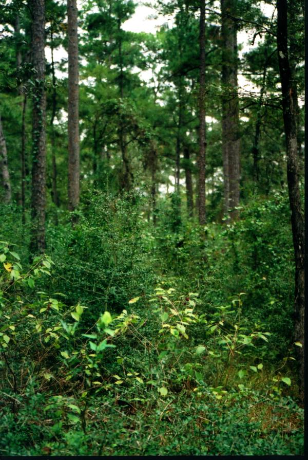 SEASON: Fall MONTH: October DATE: Nov 2003; Oct 2004 STATE: Texas COUNTY: Montgomery County LOCATION DETAILS: Little Lake Creek Wilderness Area, Sam Houston National Forest. NEAREST TOWN: New Waverly, TX NEAREST ROAD: Hwy 1375 OBSERVED: Deer hunting in the Sam Houston National Forest last November (2003). Near dark, I heard what sounded like a large limb or small tree snap. I listened, but heard nothing further. Next day, I returned before sun-up, and spent the day hunting the area. Late afternoon, I hid in a clump of small trees near the edge of the field. As darkness fell, I heard a mumbling sound, like someone was whispering. No words could be made out, although individual syllables were definately distinguishable. The sound was coming from the thick woods and sounded maybe 300 yards distant. Sounded quite human, but carried far better than I would think human whispering would. Most syllables seemed to start with "s" sounds. I listened for a while, then said "who's there?" No reply, and silence for maybe 10 minutes. Then the chattering resumed. The source of the sounds seemed to move around, but I took it to be one critter, changing location. It was very dark by now, and I turned on my flashlight and moved into the woods to try to see what was making the sounds. As I walked, the source of the chattering seemed to maintain it's distance. I spotted a "hair" on a sapling bent over the game trail that I was following. It (the "hair") was later analyzed by a competent scientist and determined to be of plant origin. As I walked, I realized that I would have to be within 10 or 20 yards of something to see it. Not likely, so I reversed direction and left for the night. No odors were noticed. I have returned to the location many times since, and found nothing. That is until a few weeks ago, and almost a year after my first "encounter".