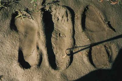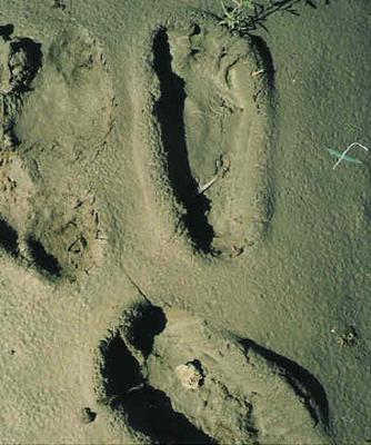 SEASON: Fall MONTH: September PROVINCE: British Columbia COUNTRY: Canada LOCATION DETAILS: 2 miles downstream from Muskwa Bridge on Alaska Highway near Fort Nelson. NEAREST TOWN: Fort Nelson NEAREST ROAD: Alaska Highway OBSERVED: No sighting - just a couple photos of prints I took.