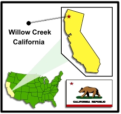 From Southern California: Drive north on Interstate 5, past Sacramento to Redding. In Redding connect to Route 299 westbound toward the coast. Willow Creek is near the intersection of Route 299 and Route 96 in Humboldt County.