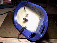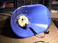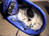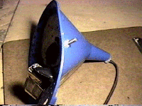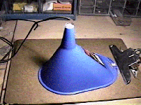 A 9-volt battery holder clip (availble at Radio Shack) is afixed to the inside wall of the funnel. A 9-volt alkaline battery is inserted into the battery holder, and 9-volt connector pad is connected to the power leads of the battery.