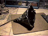 glue. Notice that the battery wire and antenna wire are still hanging loose.