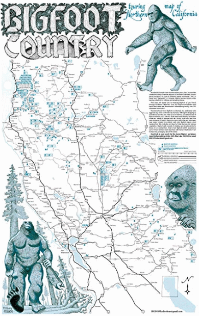 The most dependable areas for sasquatches in California: