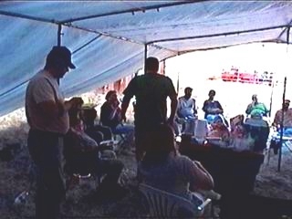 of the two tents for several hours.