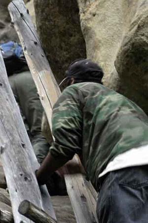 Se. (NM) climbs a log ladder made for accessing an Anasazi